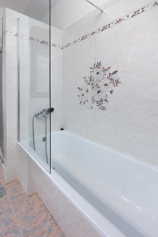 As you step into the apartment through its private entrance, you’ll be greeted by a bright and elegant living space, comprising one living room and three separate bedrooms. The apartment features one bathroom equipped with both a bath and a shower, ensuring convenience for all guests.