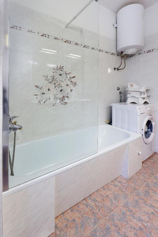 The apartment’s kitchen is fully equipped with high-end appliances, including a stovetop, refrigerator, dishwasher, and kitchenware, allowing you to prepare meals with ease. Additional amenities such as a coffee machine, microwave, and toaster are also provided for your convenience.